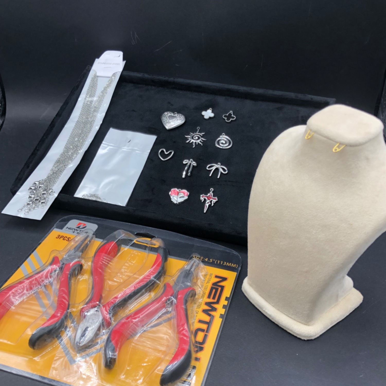 پک اقتصادی شامل استند گردنبند کوچک - زنجیر استیل 10 عدد - 9 عدد پلاک پینترستی - 1 عدد لاکت استیل - حلقه اتصال استیل - پک ابزار سه تایی به همراه ارسال رایگان